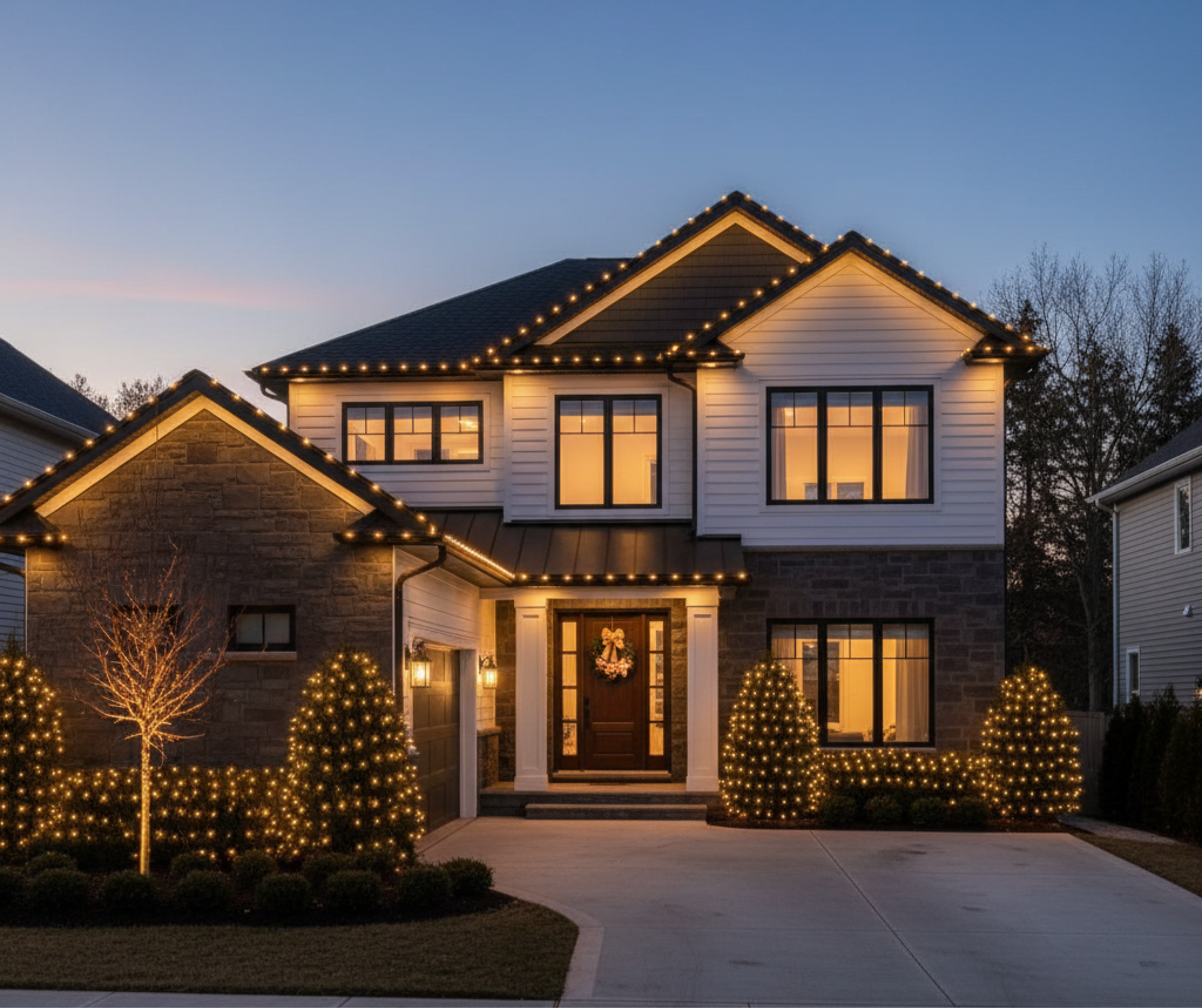 Make your home stand out this season with professional holiday lighting by Prestige Landscape & Design. Enjoy 20% off your installation + free design preview!